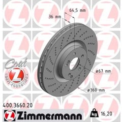 Bremseskivetype indvendigt ventileret, hullet